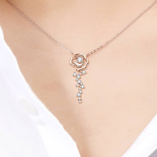 925 Sterling Silver Moissanite Rose Pendant Necklace