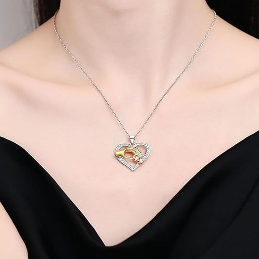 925 Sterling Silver Heart and Hand Pendant Necklace